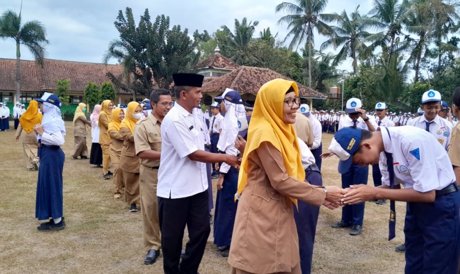 Guru dan karyawan menjabat tangan pustakawan remaja yang telah dilantik